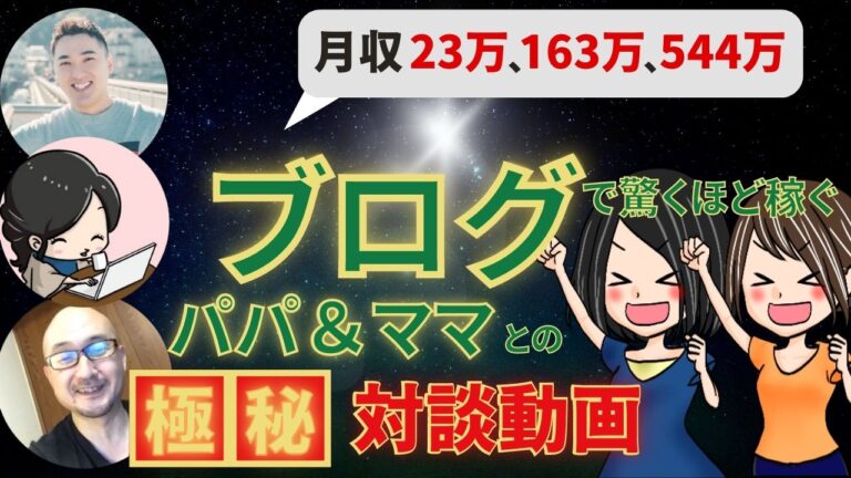 月収23万円、月収163万円、月収544万円!ブログで驚くほど稼ぐパパママとの極秘対談音声(計192分)